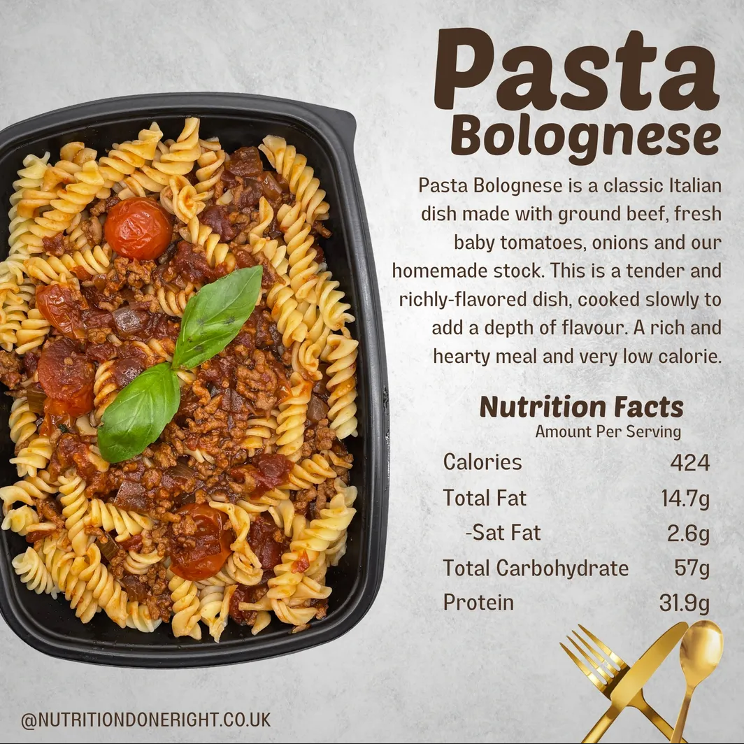 ndulge in the rich and savory flavours of our pasta bolognese. Made with slow-cooked ground beef, aromatic herbs, and a decadent tomato-based sauce, this classic Italian dish is sure to satisfy your cravings. Enjoy a taste of Italy with every bite. Bon appétit!